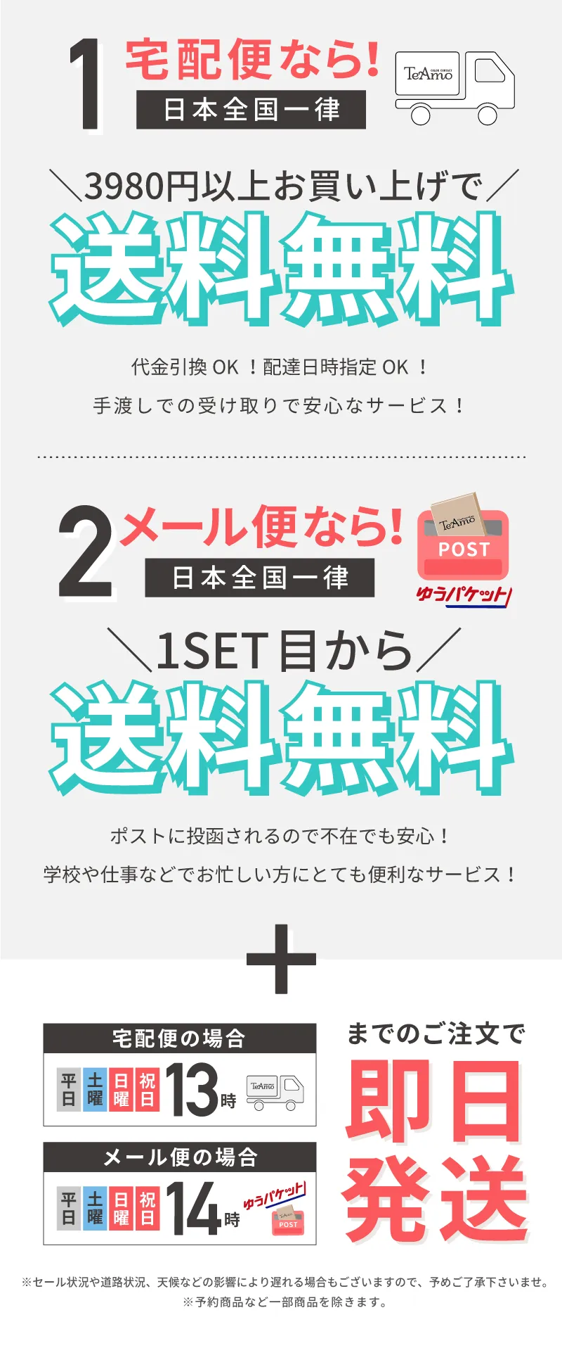 ※当サイト以外のサイトでTeAmo商品をご注文いただいた場合は時間指定が出来かねる場合がございますのでご了承ください。